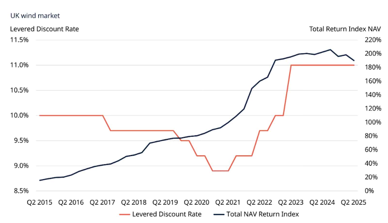 Source: Listed Greencoat fund quarterly reports Q1 2015 – Q1 2025 (Total Return Index NAV, (NAV + Reinvested Dividends).